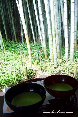 本堂の裏側にある「竹の庭」は有料ですが、ここに来たら必須です。そんなに大きくはない竹林ですが、散策路が巡らされていて、静かで荘厳、しばし外界の騒々しさを忘れることができます。竹林の一角にお茶屋さんがあり、竹林を眺めながらお抹茶を頂けます。鳥の声、水の音、竹葉が風に揺れる音。身も心もデトックスされるような時間でした。