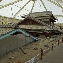 家の下半分が土砂の下になっている家屋が並んでいて、保存移設したものだそうです。無料です。
