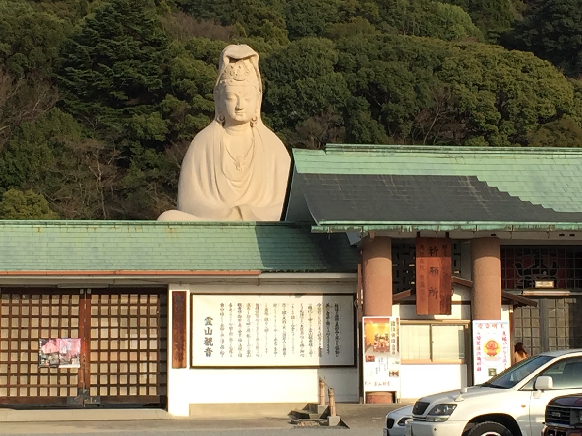 山を背景にこちらを見下ろしている巨大な観音像は慈悲深いお顔ではあるんですが、京都には似合わないような気がしました。
