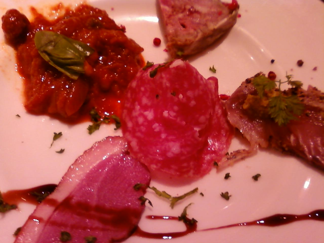 ここのアリアさんは、東京メトロ千代田線の乃木坂駅から、あるいは日比谷線および大江戸線六本木駅から5分くらい、国立新美術館と六本木ヒルズを結ぶ裏通りにあります。すごくおいしいイタリアンですが、スペイン料理やフレンチも組み込まれ、カジュアルな感じです。お客さんは若い人が中心、店員さんもガッツがあります。ただ、店内のノリノリ音楽のボリュームとお皿の汚れが少し気になりました。もう少し落ち着くと最高なんだけど・・・。