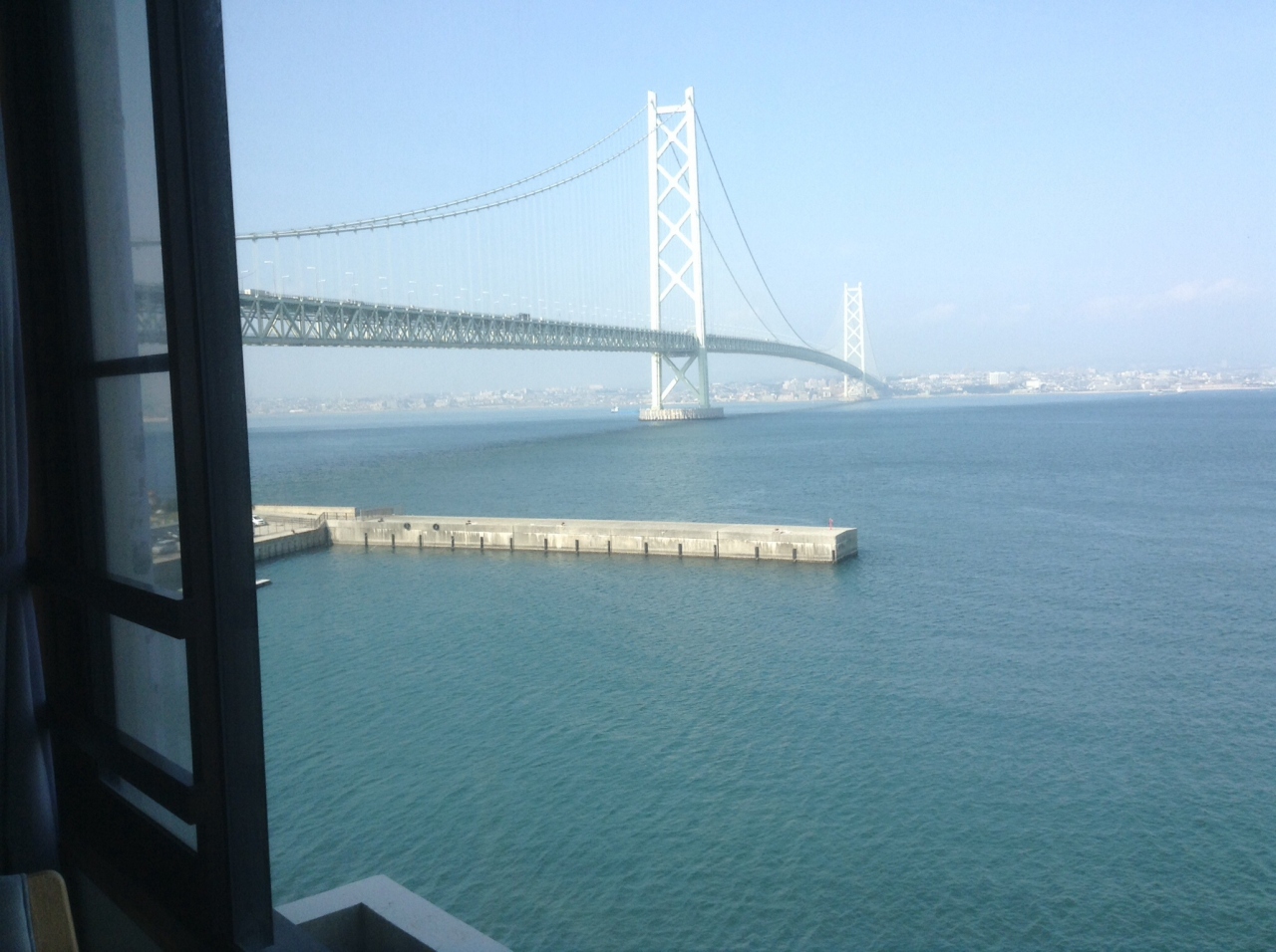 明石の港から船で岩屋に渡り、一泊しました。宿の淡海荘は、明石海峡大橋大橋のそばにあり、夜はイルミネーションが綺麗でした。昼間は、明石海峡の麓にある公園がお奨めです。橋脚の巨大さに、間近に触れることができます。