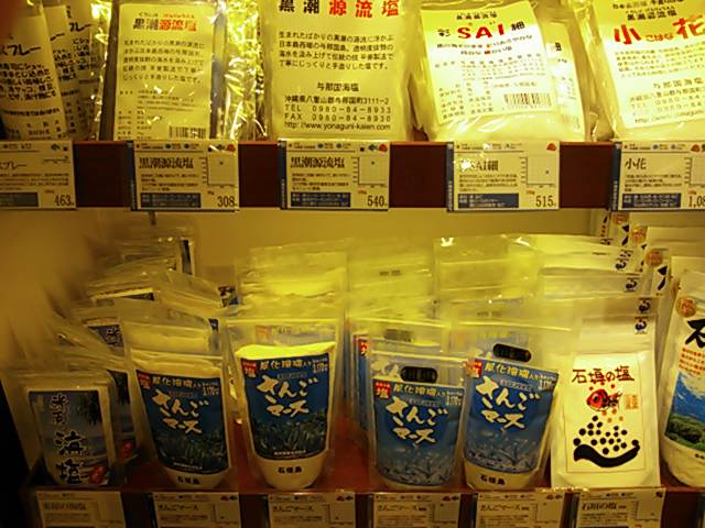 沖縄の方言で塩のことを「まーす」、屋を「やー」と呼ぶそうで、「塩屋」で「まーすやー」という店名です。その名の通り、沖縄の塩はもちろん、日本、世界各国の塩を取り揃えています。見たこともないような種類の塩があり、かなりの種類の塩を味見することが出来ます。お勧めは「わさび塩」と「柚子とうがらし塩」です。