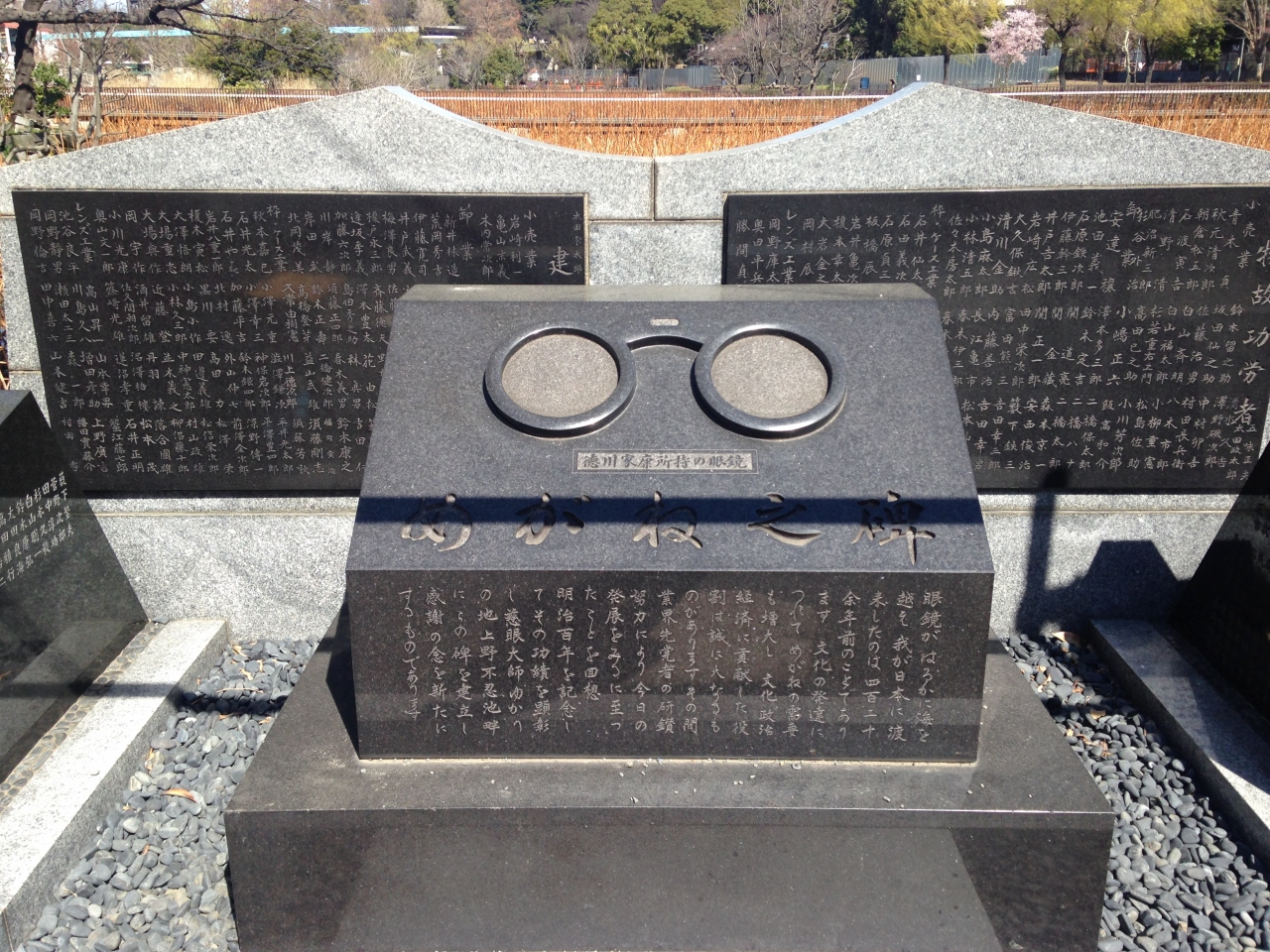 建てられている石碑で大きなメガネがかたどられていて、