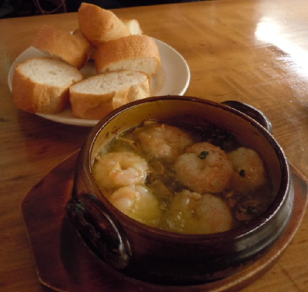 海老をオリーブオイルとニンニクをで煮込んだタパス!