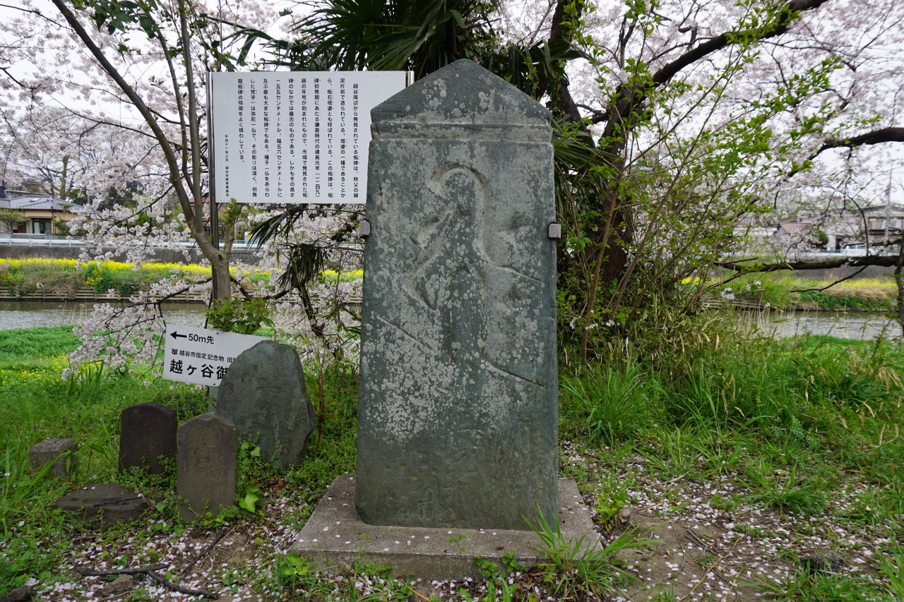 越谷の観光では、いくつかのモデルコースが紹介されていて、今回、越谷駅から北越谷駅までのコースを歩いてみました。その途中の元荒川沿いにあるのが建長元年板碑。建長元年というのは、鎌倉時代の中頃のこと。高さ155センチ、幅56センチ。「いざ鎌倉」の時代からこうしてあったのかと思うと、ちょっと感慨深いものがありました。