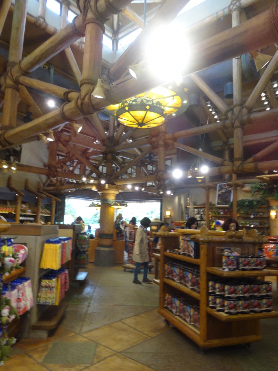 ジュラシックパークザライドの流れで通るショップです。店内は恐竜アイテムがいっぱいで男の子は楽しいです。恐竜メモやかぶりもの、Tシャツなどがずらり。店内は広いですがいつも混雑しているイメージです。びしょ濡れ対策のTシャツもあります。