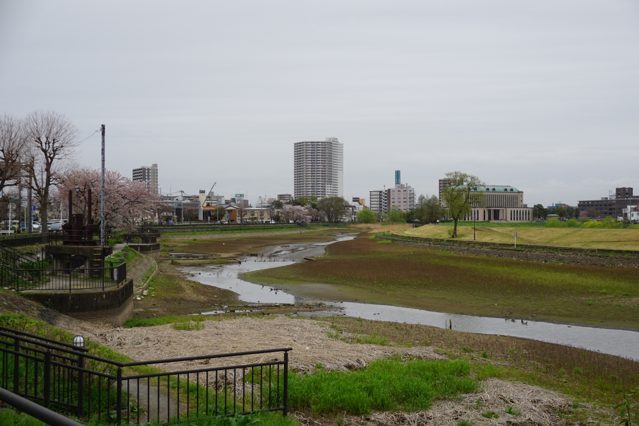 葛西用水路は、越谷駅からしらこばと橋に向かう途中。なだらかな傾斜の堤防の用水が続いていて、堤防にはジョギングをする人の姿もちらほら。越谷は水郷だそうですが、なんとものどかな風景で、越谷のイメージがちょっと変わったような気がしました。