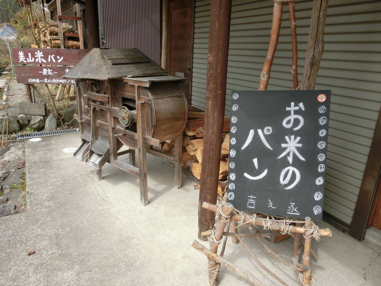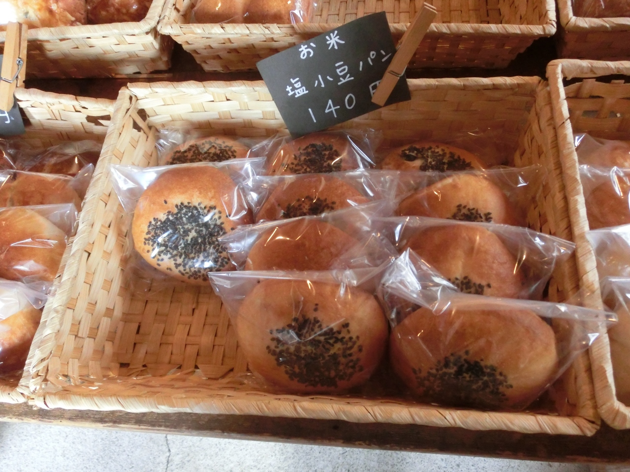 3~4人入ればいっぱいになってしまう狭い店です。バスケットの中に並んでいるのは、地元で取れた食材を具にした米粉のパンです。黒豆、小豆、枝豆、玉ねぎ、かぼちゃ、チーズなど10数種揃っていましたが、売り切れたら閉店です。週末はお客さんが外に溢れるほどになるので、早めに行く事をお勧めします。