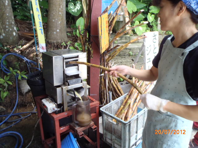 サトウキビをしぼって南国フルーツと合わせたジュースがいただけます。