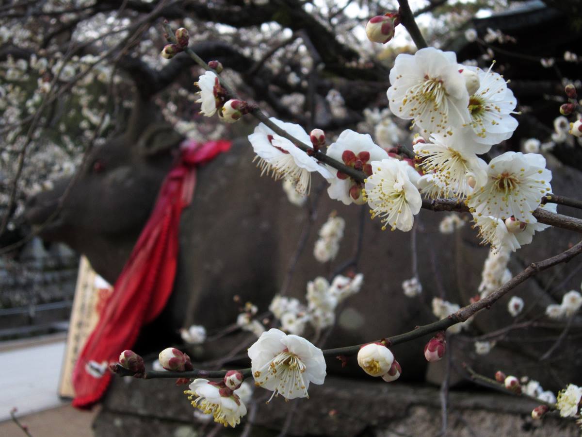 北野天満宮は、学問の神様としても知られる菅原道真を祀る神社。菅原道真は梅が好きだったという言われから、北野天満宮は梅の名所として知られ、「北野白梅町」という地名・駅名にもなっています。境内には赤、白などたくさんの梅が咲き、大変いい香りが広がります。
