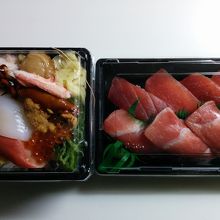 早々、マグロの握り寿司と海鮮弁当を購入しました。