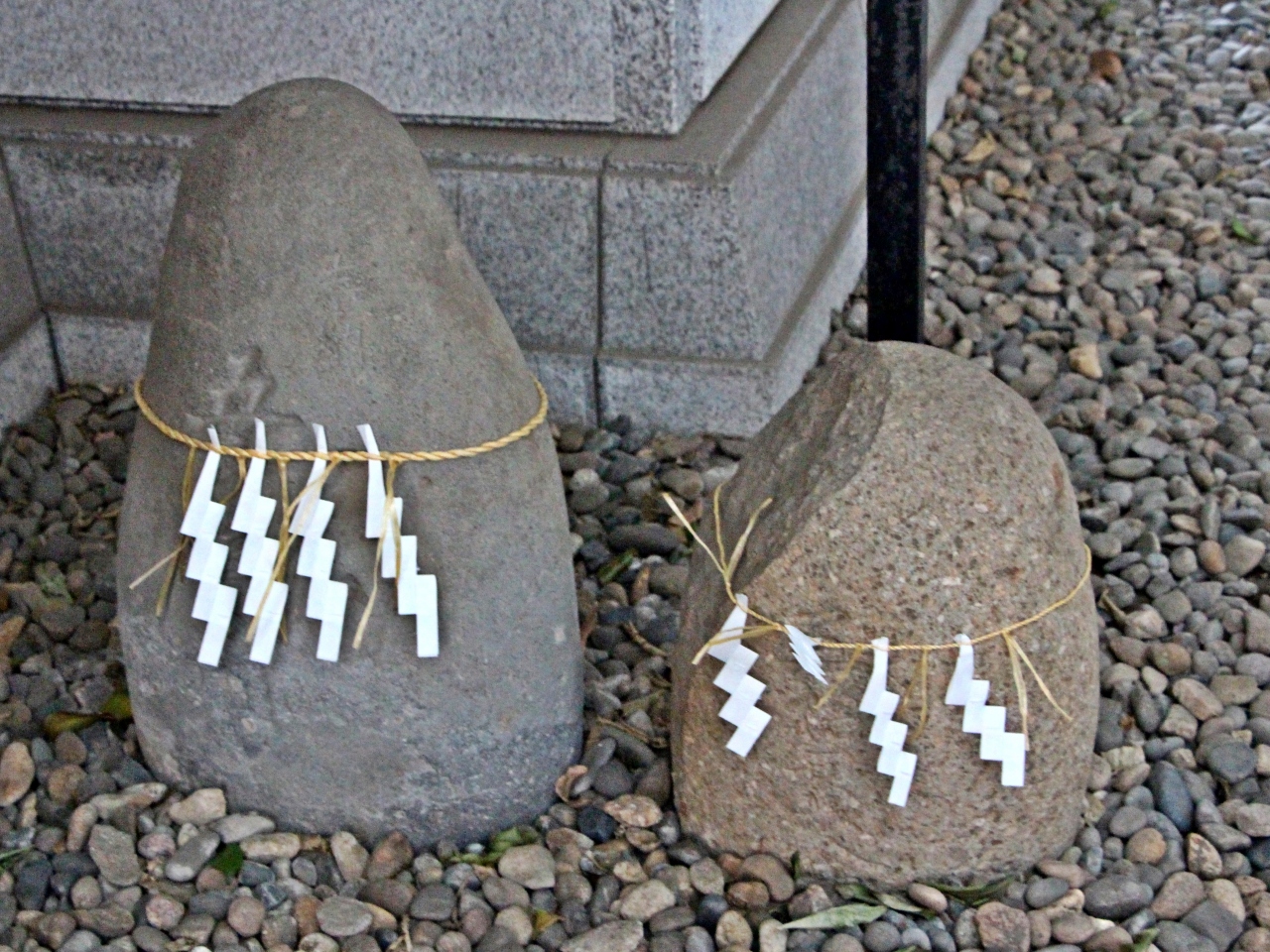 筑土神社には見所がいくつかあり、本殿の脇にひっそりとある二つの小ぶりの石もその一つだ。