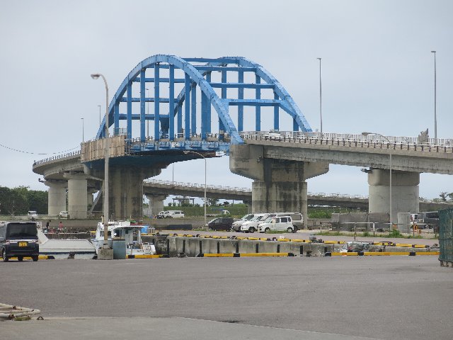 石垣港と、沖合いの埋立地を結ぶ端です。青い色が特徴的で、けっこう目立ちます。