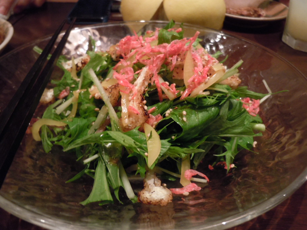 さっぱりサラダは娘のリクエストで水菜と和野菜のさらだ