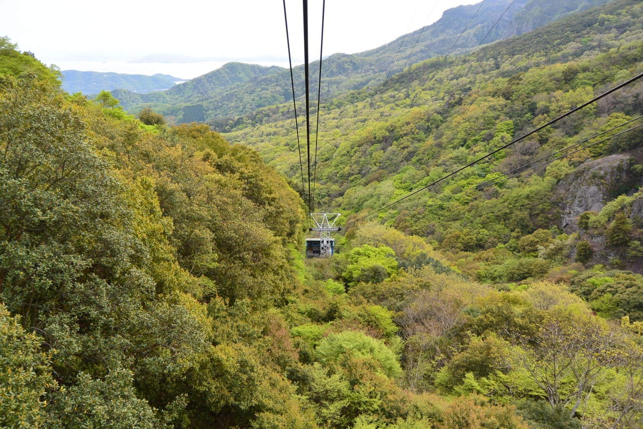 新緑の時期で素晴らしい眺めでした。新緑の木々の若芽のあいだにヤマツツジが濃いピンク色でアクセントになってとてもきれいでした。もみじの木が沢山ありましたので、きっと紅葉に時期もきれいな眺めだろうと思います。もう少し楽しみたい気がしましたが、所要5分です。