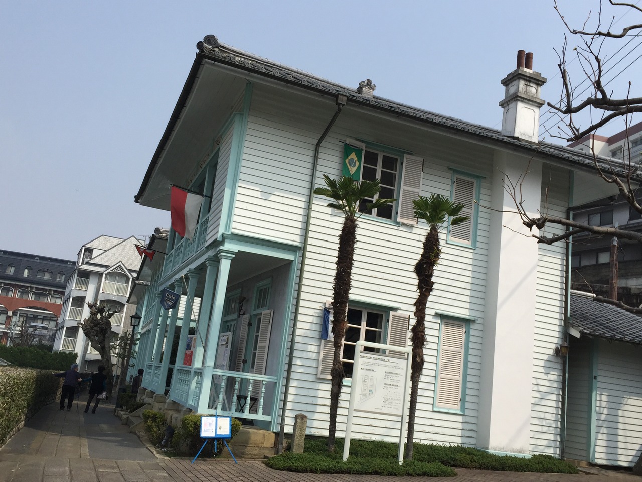 路面電車の終点、石橋電停から歩き、オランダ坂を登って合計4分くらいかかりました。明治中期に建てられた住宅群で、かなり敷地が狭いです。社宅か賃貸住宅として建てられたようです。重要伝統的建造物群保存地区に指定されているので、この建物を含めて街並み全体を保存する必要があるようです。
