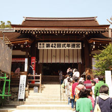 訪れた日は仏滅でしたが、細殿での結婚式をちょうどみかけて、仏滅でも婚礼は何組もいると仰っていました。