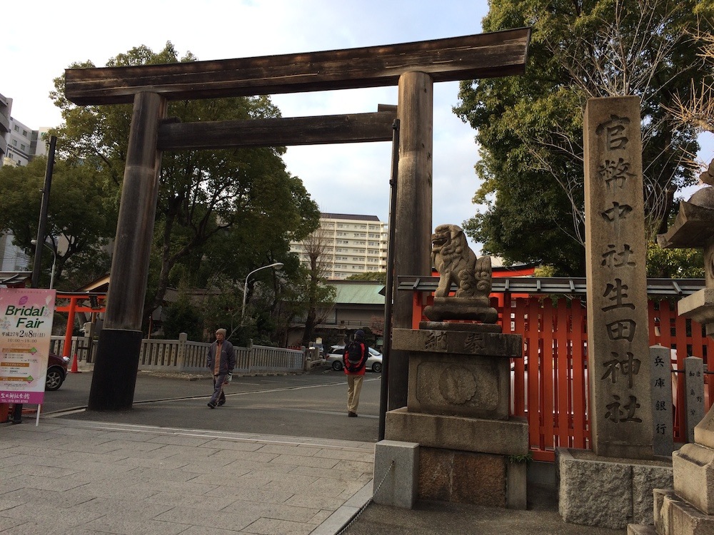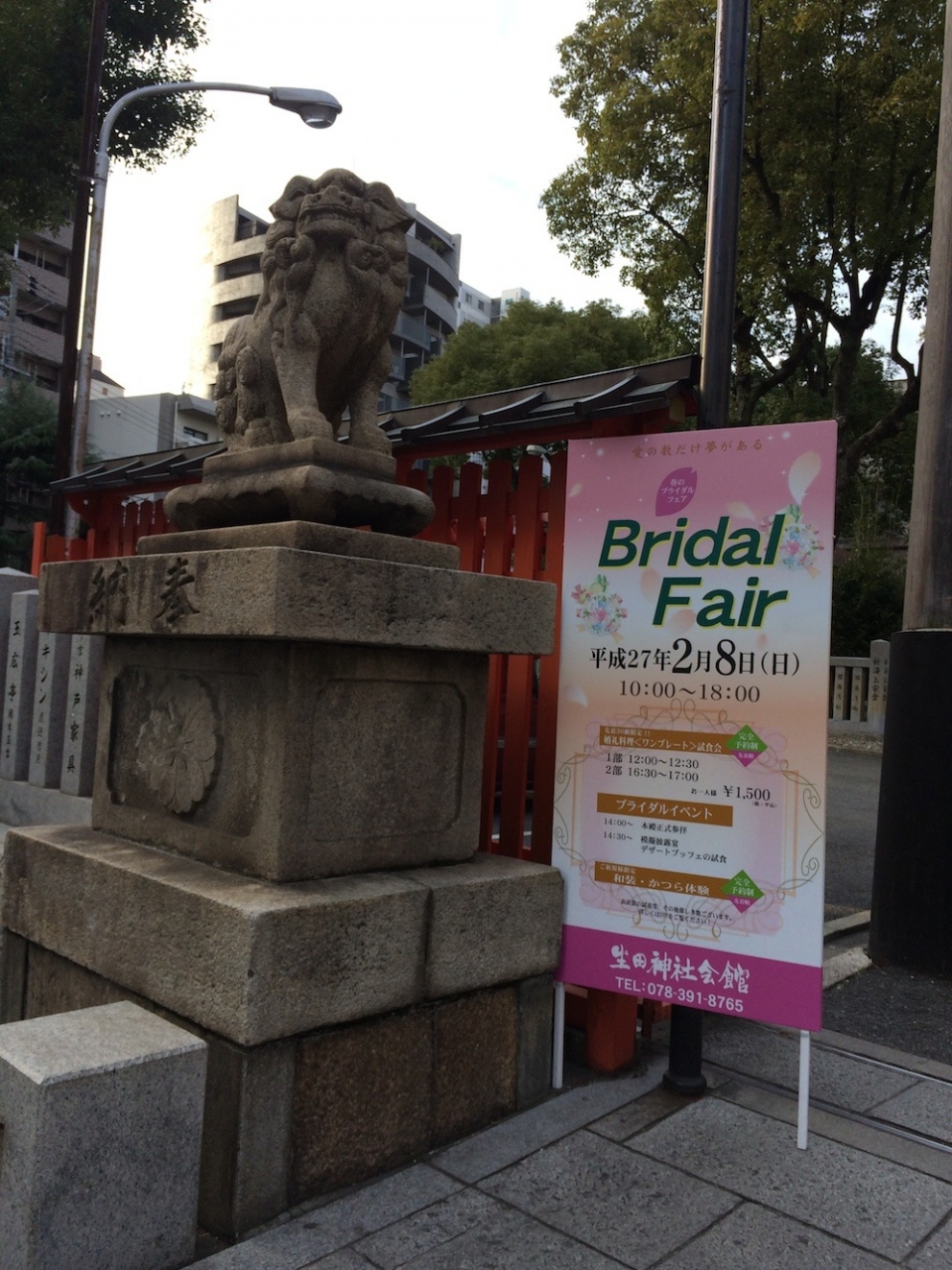 三宮の東急ハンズからすぐにある距離にある生田神社。いくたロードはここの参道になっています。都市部の割にはなかなか広い面積と奥行きがあって、奥は鬱蒼とした森になっています。真冬にいったのですが、この時はブライダルフェアを行っていました。