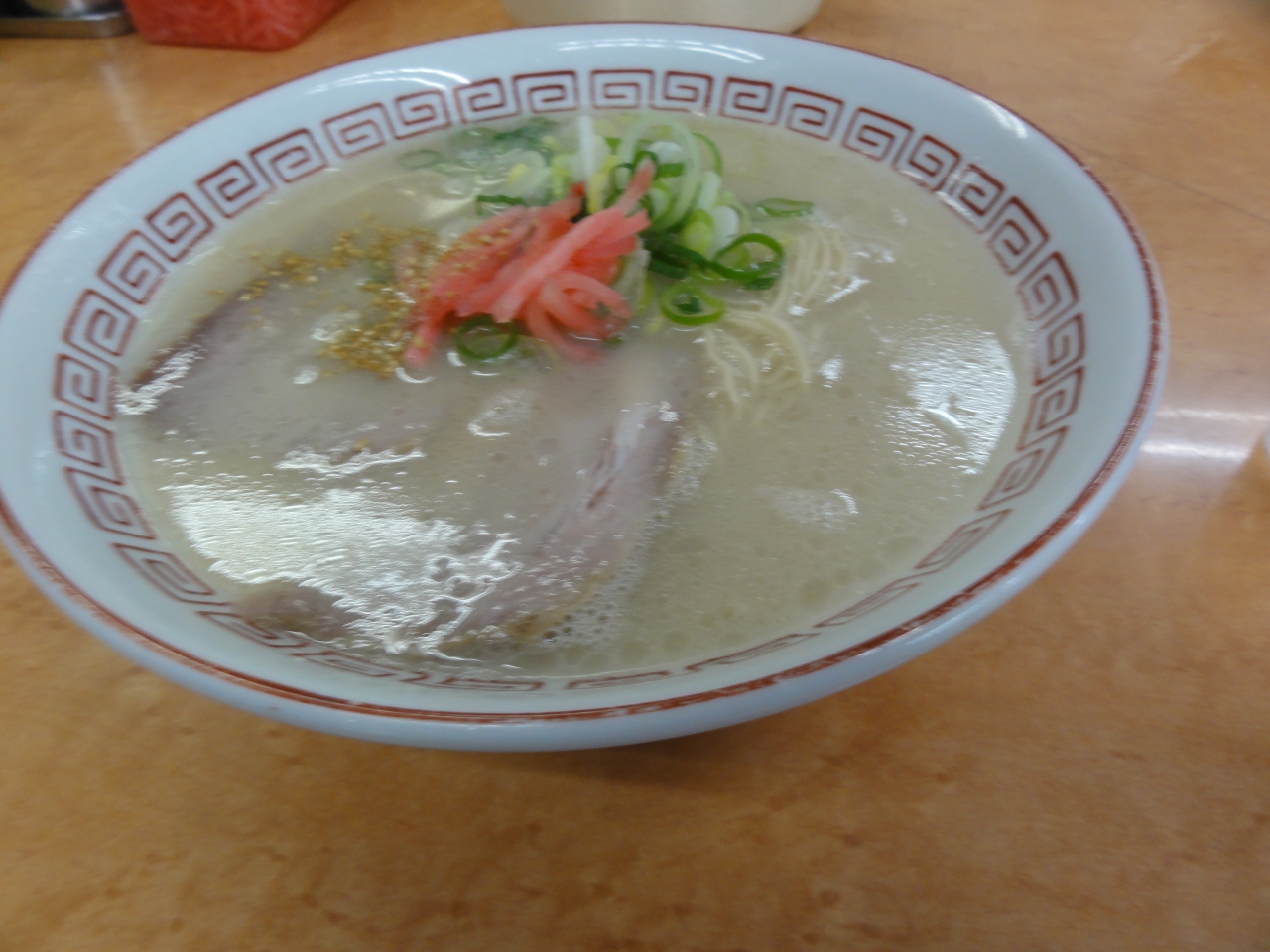 祇園駅から徒歩3分、宿泊したスカイコートホテル博多の近くにありました。カウンターの他にテーブル席が一つのこじんまりとしたお店です。長浜ラーメンを麺硬めで食べました。関東より一人前の麺が少ない気がしたので、替え玉追加しました。お昼はご飯と餃子のセットもあるようで、若者はセットを追加してました。とんこつスープも慣れて美味しかったです。地元の人気店のようです。
