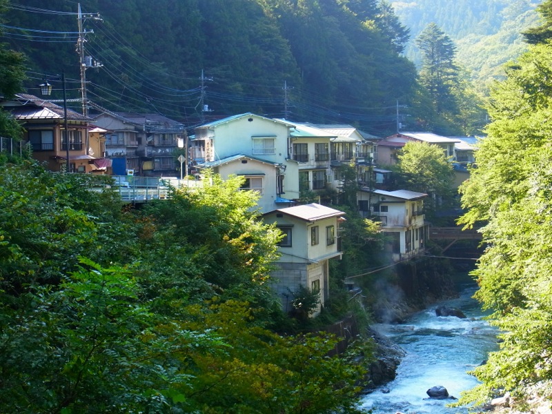 四万温泉の温泉街は四万川沿いに形成され、散歩の際にせせらぎと川の様子がとても印象に残っています。清流で気持ちいいです。こちらはビエンナーレの会場にもなっており、(期間限定だと思いますが)夜はライトアップされ、昼間とはまた違った幻想的な雰囲気が素敵です。