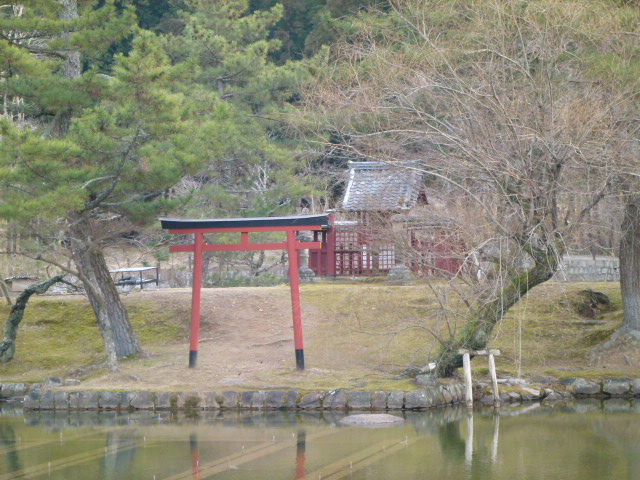 大仏殿めざして参道をまっすぐ進みます。途中に国宝・南門をくぐってミュージアムを左側に見たら、そのまま進むと右側に鏡池があります。鏡池越しから大仏殿や中門をバランス良く眺められるので、是非立ち寄っていただきたいものですね。この池には鮒や鯉も生息していますが、天然記念物のハタカ(馬魚)もいるようですが、残念ながら見ることはできませんでした。