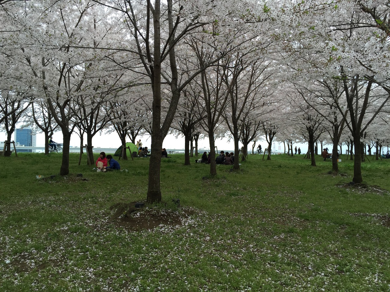 少々肌寒い日でしたが、近くの駅前のコンビニで食糧を買ってお花見を楽しみました。