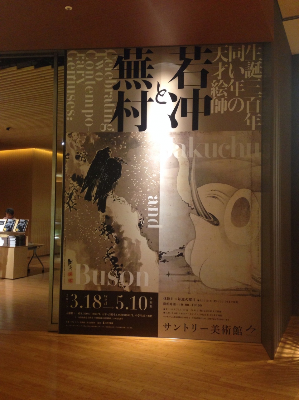 今回は若冲と蕪村展を見に。同じ年に生まれた二人の天才画家の生涯を追った内容です。大きな屏風絵から可愛らしい動物の絵まで、二人のほっとする画風に癒されました。
