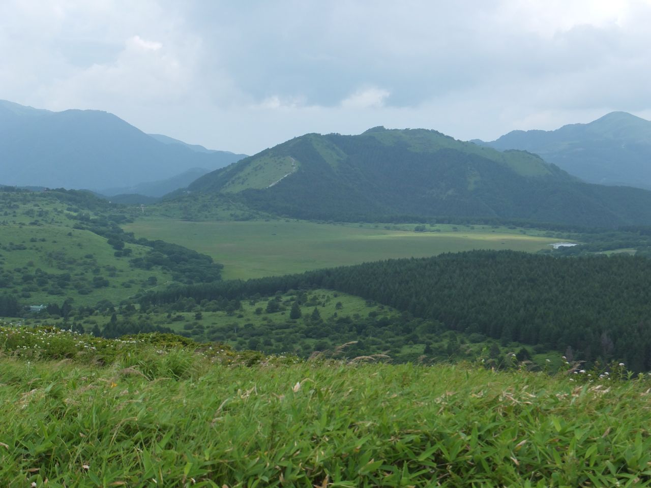 車山肩から北方を見ると平らな草原に見える一角がありますが、それがこの八島湿原です。