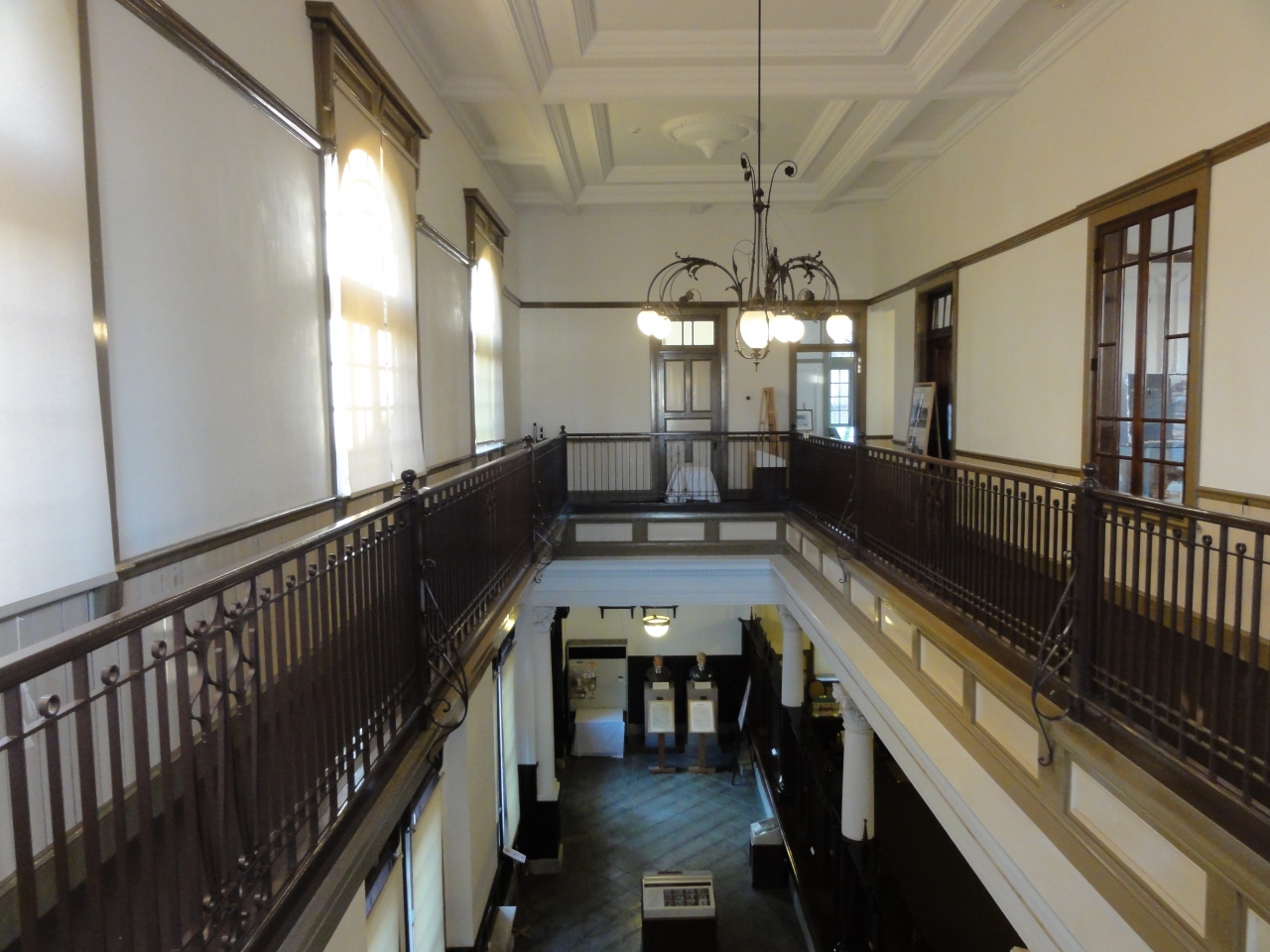 旧佐賀銀行本店はJRの東京駅舎を設計した辰野金吾が設計したたてものです。中は銀行のカウンターが残されており、カウンター内部や二階の色々な部屋にも入れました。カウンター前の来客部分は広くはありませんが吹き抜けになっているので解放感がありました。