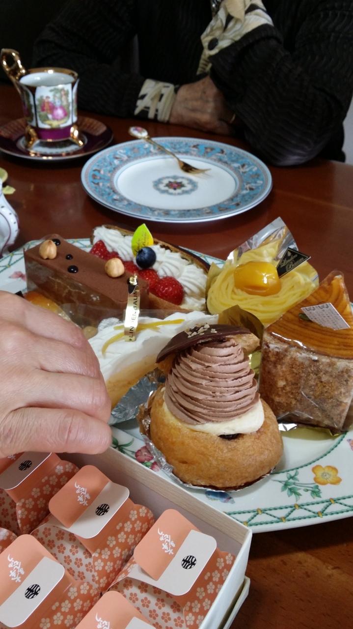 お見舞いに親戚が買ってきてくれました!シュークリームの皮を上下に挟んでチョコレートのクリームが入っているケーキがとてもふわふわで美味しかったです。その他チーズケーキやモンブランなど種類は沢山あるようです。