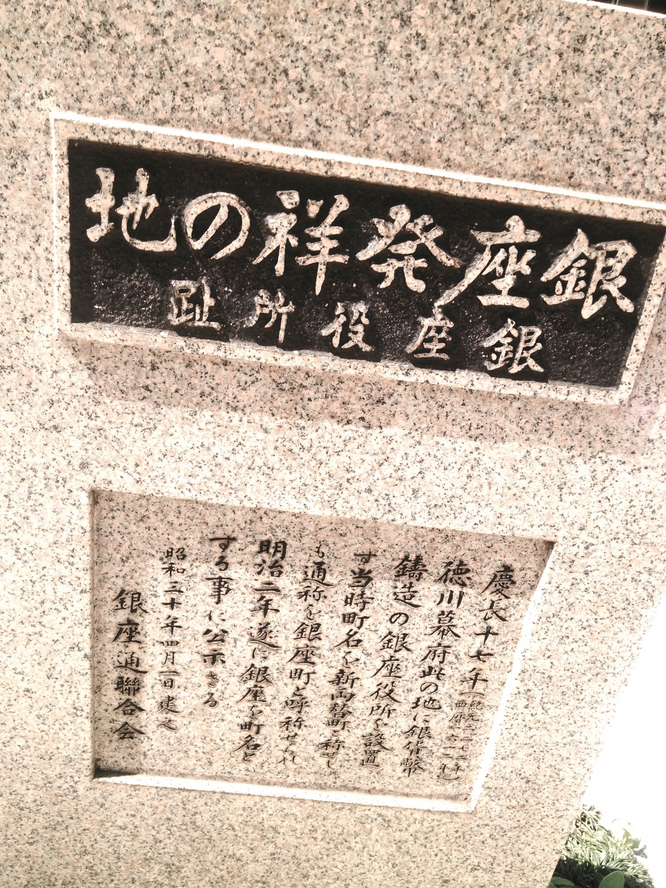 中央通りの銀座1丁目、築地方面側にあります。メインストリートあるため、周りも高い建物なので、なかなか気が付きにくいです。「徳川幕府此の地に銀貨幣鋳造の銀座役所を設置す当事町名を新両替町と称せしも、通称を銀座町と呼称せされ明治二年遂に銀座を町名とする」ということなので銀座ということを初めて知りました。銀座の名前の歴史です。