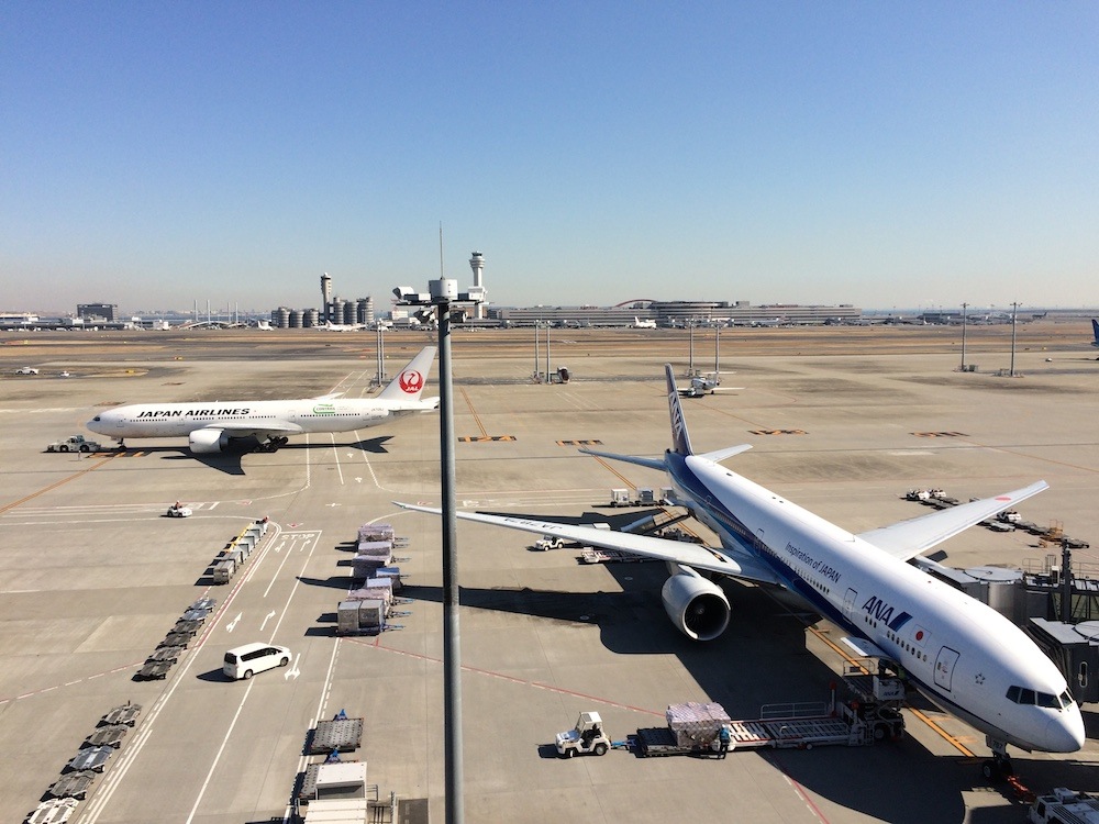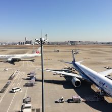 屋外にあるので、天候が悪い場合は出ていけませんが、この日のように晴れているととてもいい景色を見ることが出来ます。飛行機は日系二社が多いものの、夜などは他国の飛行機もよく飛んでいるので、なんとなく眺めているだけでも面白いですね。