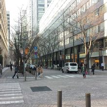 東京駅の丸ビル裏手側に、駅と平行して走る通り。一方通行なので車は少なく、歩道も広いので気持ちよく歩けます。ブランドショップやカフェなどの路面店が続くファッションストリートです。道路や歩道は一部石畳で、見た目にもシックで雰囲気が良いです。