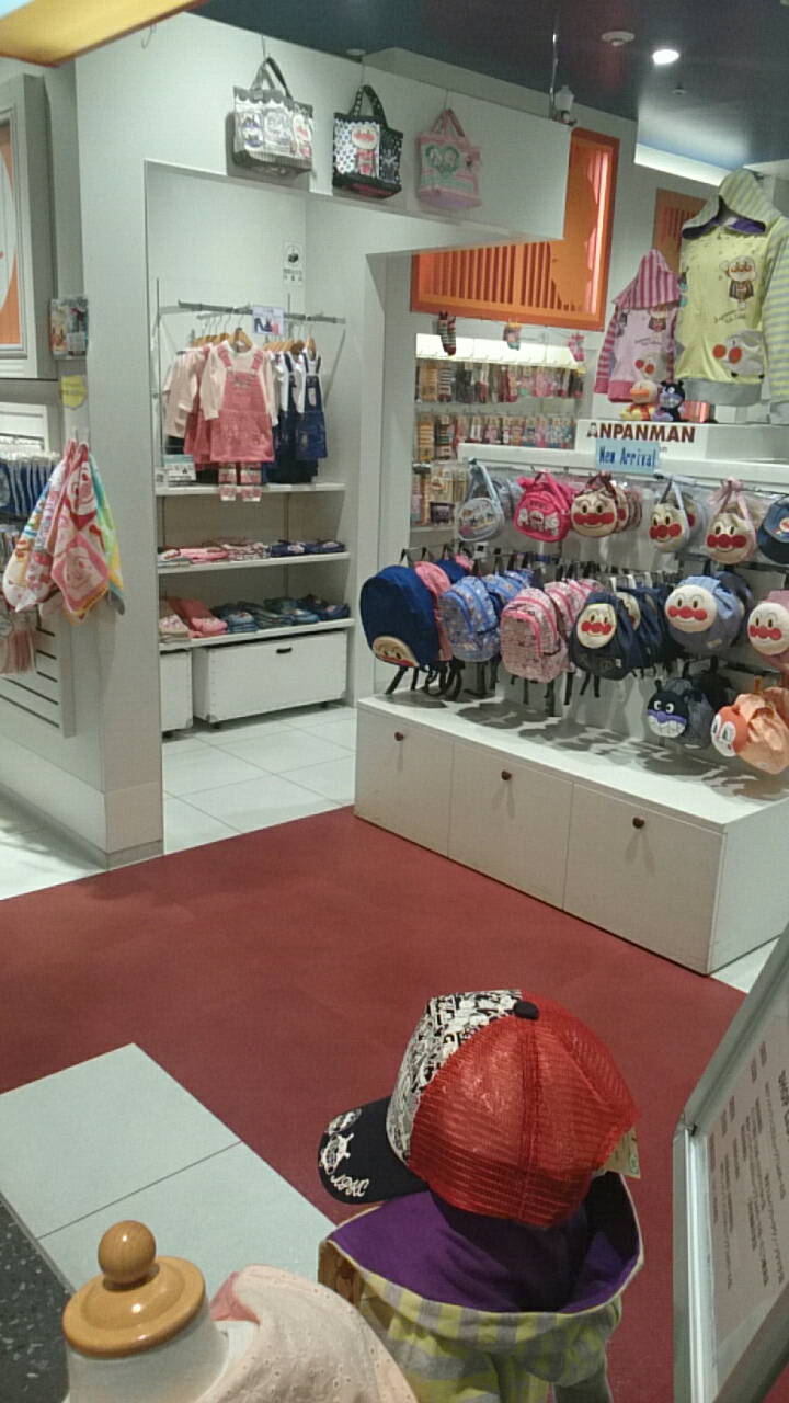 こどもたちに人気のアンパンマンですが、ソラマチ1階のソラマチ商店街にはアンパンマンショップがありました。店頭にはアンパンマンのリュックサックやポーチが並んでいて、まるでたくさんのアンパンマンに見られているようでした(笑)ソラマチ店限定のタオルもありました。