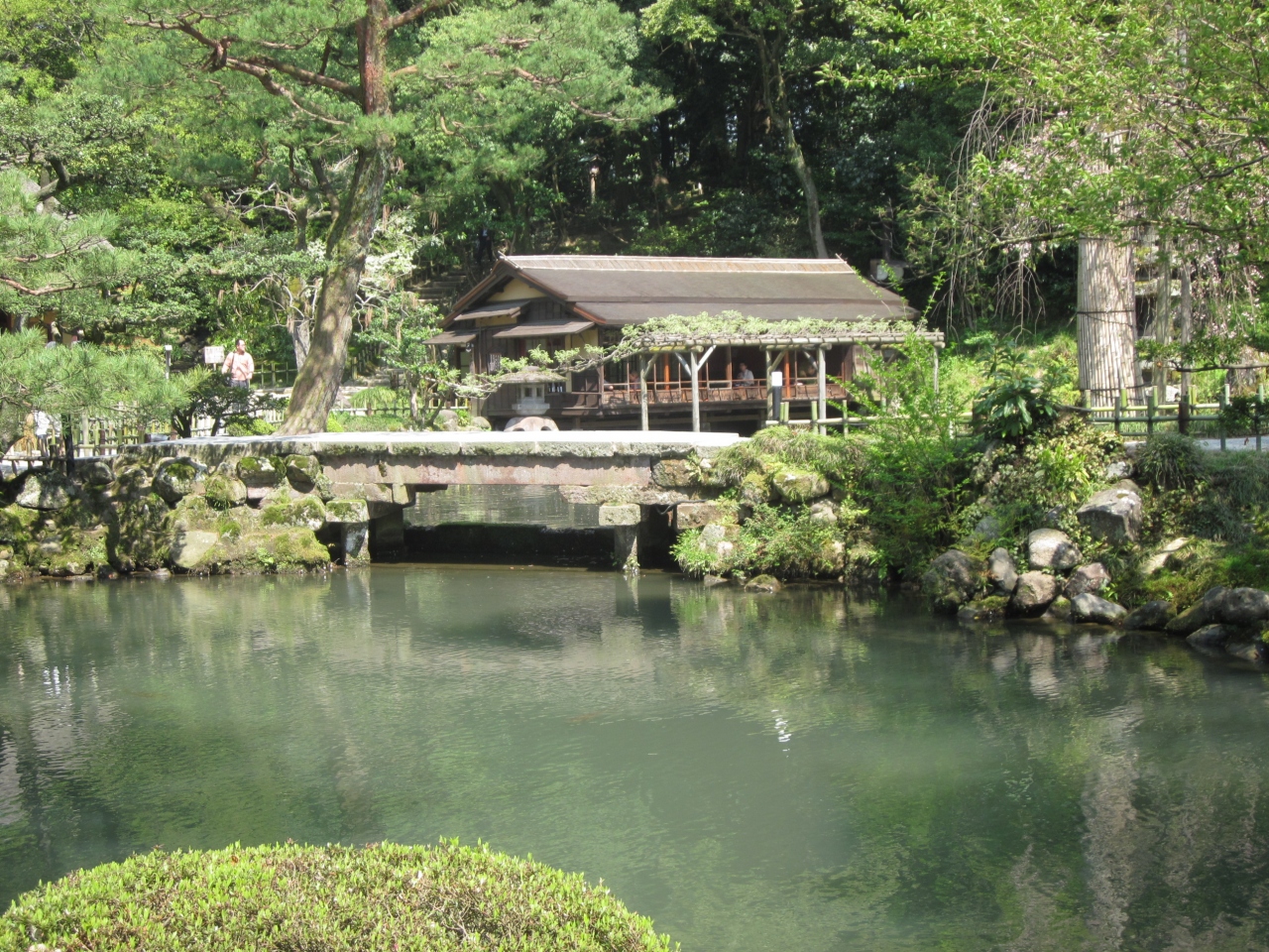 大学生のとき以来、久しぶりに兼六園を訪れました。かつて訪れたときの印象は琴柱灯篭程度だったのですが、今回兼六園が高台にあるということが初めてわかりました。多くの池を配し、高低差をうまく利用した庭園のレイアウトには感心しました。