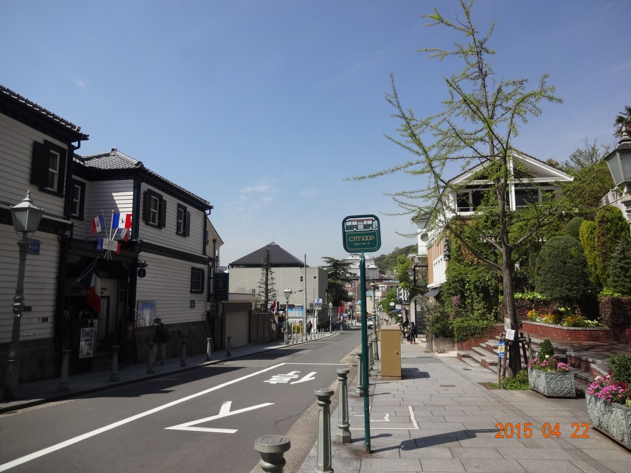停留所もバスと同じモスグリーンなので、わかりやすいです。一日乗車券を提示すると、異人館や船のコンチェルト、モザイクの観覧車などの割引があります。