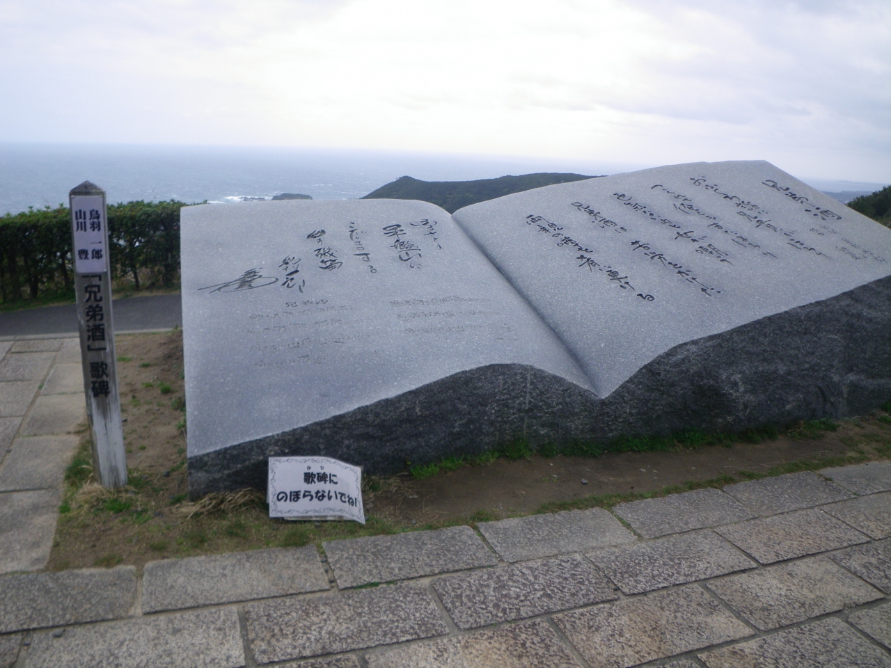 パールロードを走っている途中で看板を見つけたので立ち寄ってみました。広い駐車場に軽食を食べられるカフェやお土産店もあり、しっかりしたサービスエリアになっています。高台にある展望台からのながめは絶景。遠くに地平線が見えました。鳥羽一郎と山川豊兄弟の兄弟船の歌碑もありました。
