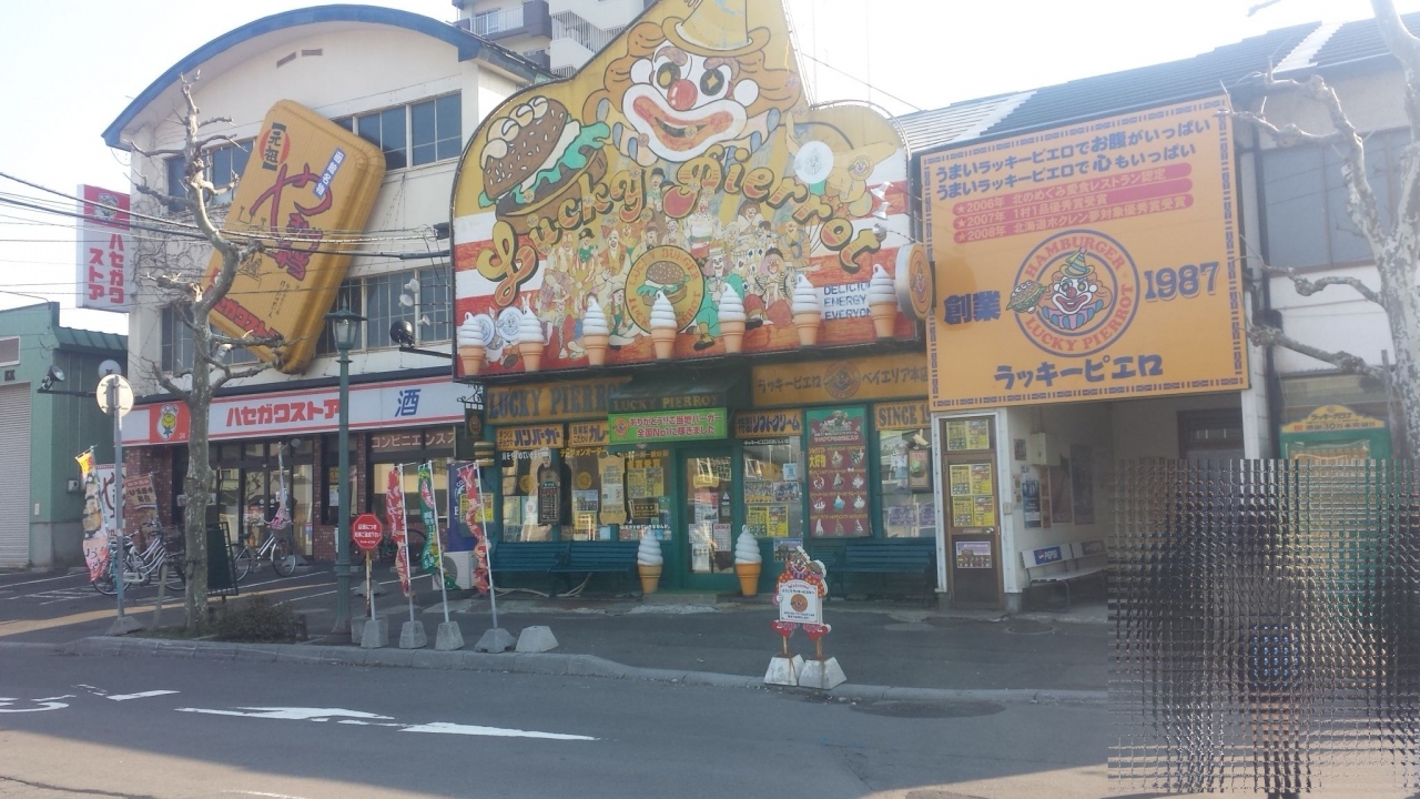 交差点を渡ると、ラッキーピエロベイエリア本店+ハセガワストアーが・・・。