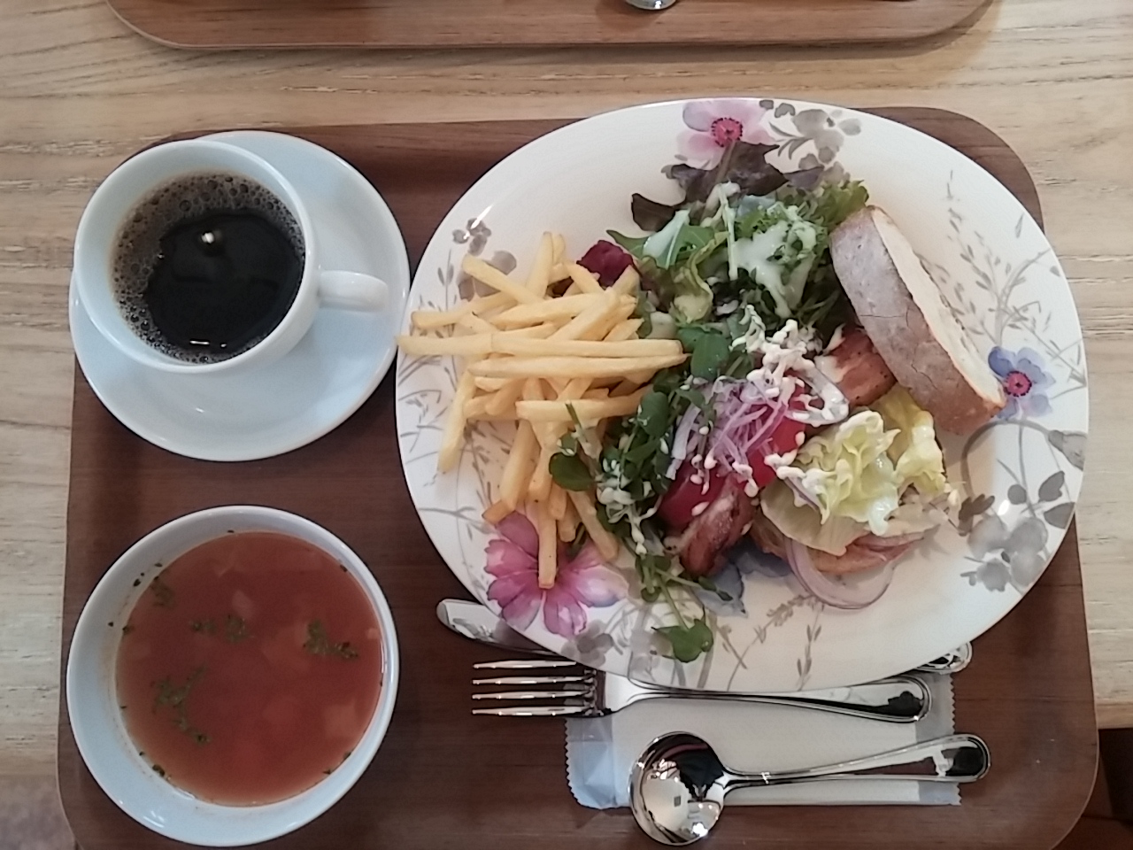 従来のマルシェのところにテーブルが置かれて食事ができるスペースになっていました。