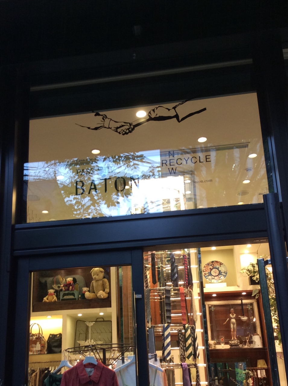 丸の内ブリックスクエアの中庭に面した所にあるリサイクルショップです。お洒落なガラス張りの店内にはアンティーク雑貨、服飾品、リサイクル品、盆栽などの植物が並び、販売品には出品者の思い出などを書いたタグがついていたりしています。