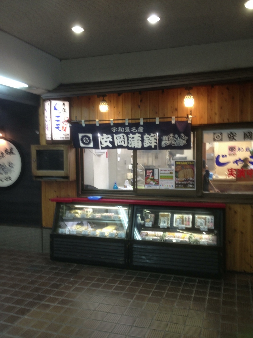 有名な安岡かまぼこ じゃこてん食べにJR松山駅へ
