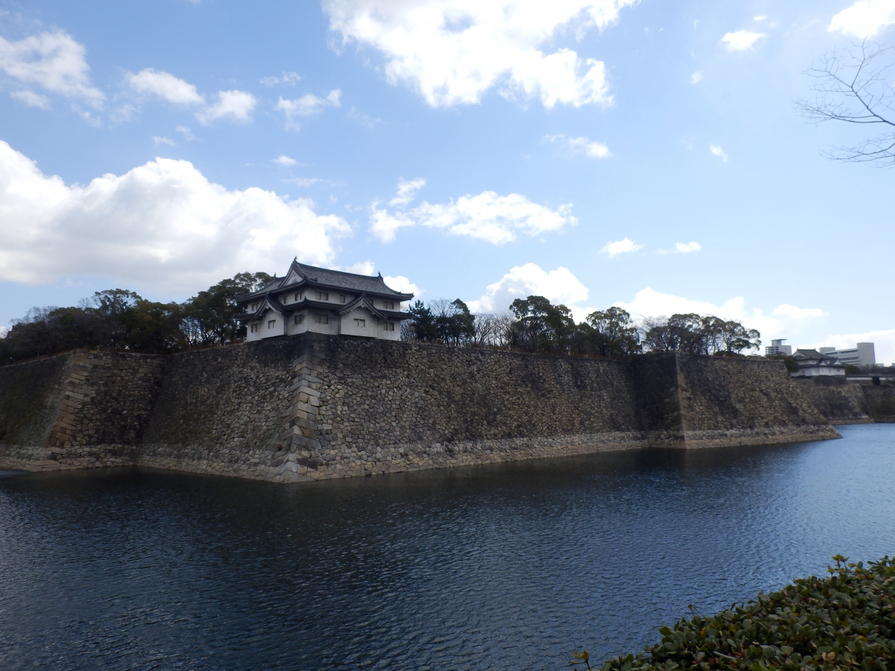 大阪城に現存する櫓の一つ、一番櫓と六番櫓と同様櫓は外側から見るのが最も綺麗に眺められます、乾櫓は京橋口近くの追手前学院前から大阪府庁付近から外堀を挟んで見て下さい添付写真、城内からですと西ノ丸庭園に入り北の隅にある、庭園は有料です、内側から見た櫓は家庭だと勝手口みたいな感じになります、城の戌亥の隅にあるのでこの名が付いています、参考資料*大阪市が設置した立札