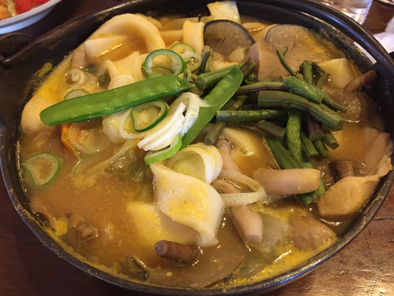 ほうとうは具沢山で特にかぼちゃのでかさにはびっくりしました。