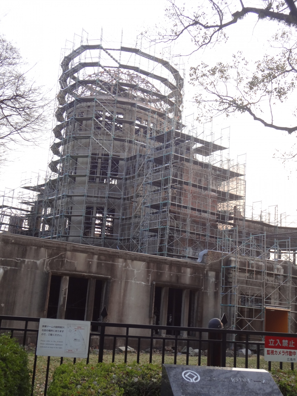 広島駅からバスで約20分で着きました。原爆ドームの内部は立ち入り禁止になっていましたが、柵の外からは見ることが出来ました。爆風で破壊された建物(剥き出しの鉄骨など)からは、原爆の原爆の悲惨さが伝わってきました。日本人にとっては、「一度は見ておくべき建物」と感じました。