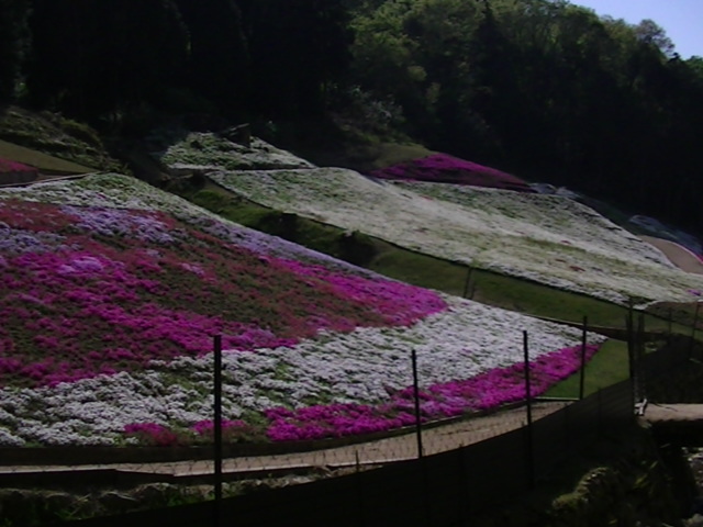 山、庭、に敷き詰められて 植えられた 芝桜 が今が見頃で(4月~5月初め頃)