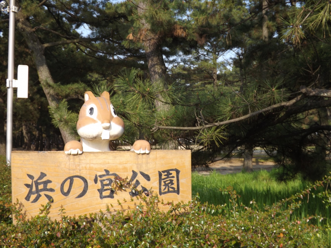 浜の宮公園は広さが150000平方メートルくらいある大きな公園です。公園と言うよりは、松林と言ったほうがあてはまるような気がします。昔は、加古の松原と呼ばれていたそうです。かなり、納得。バレーボールのコート・市民プールなどもあり市民の憩いの場です。ウォーキングにも最適です。隣接して天満宮があり、こちらも見所になっています。また、昔この松林の中に尾上飛行場があり、戦争遺産として、門柱や基礎などが保存されています。