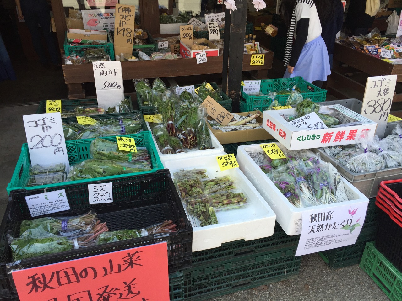 果物屋だが 桜の季節の春は 立派でフレッシュな山菜が実にたくさんメインで並んでいた。