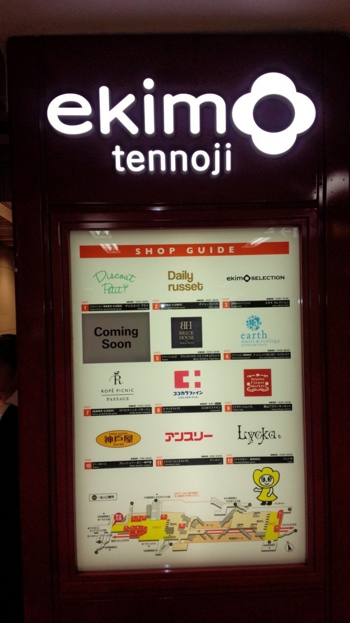 地下鉄天王寺駅近くにあります。なんばや梅田に比べて地下街が小さいので、すぐに見つかると思います。コンビニをはじめ、ショップは充実しているので、とても便利です。天王寺から地下鉄で、なんばや梅田に向かう乗り換えの人がよく利用しています。