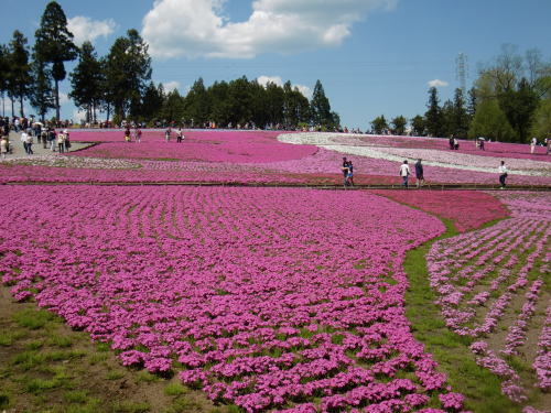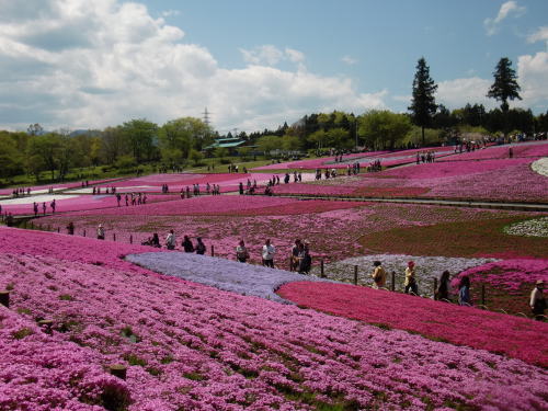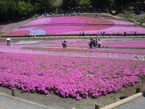 4月下旬に芝桜を見に行きましたが、5月の連休頃が一番よさそうですね。混雑するのを避けてすいている日を選んだのですが、私たちが行った日も混み合っておりました。