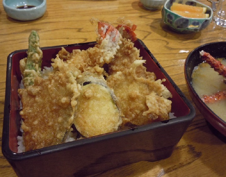野菜もたっぷりだが、伊勢海老のプリプリの身もたっぷりでちょっと贅沢な天丼!